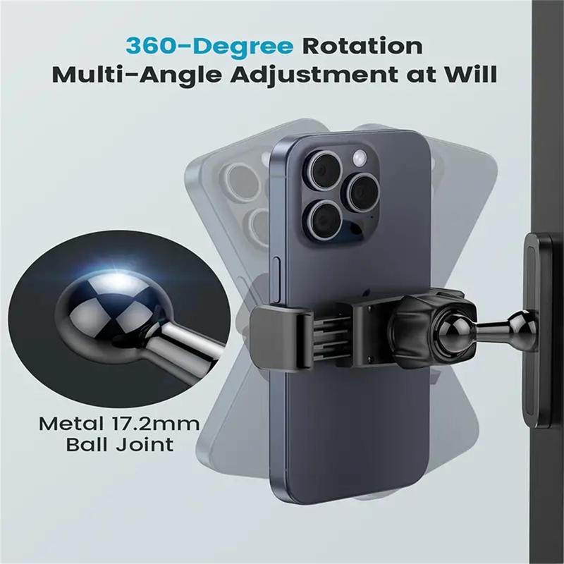 Attach to Any Metal Surface: This versatile phone holder features a powerful N52 magnet, allowing you to easily attach it to any metal surface such as gym equipment, kitchen appliances, golf carts, or any metal surface. Explore new ways to use it and add fun to your daily routine.Universal Phone Holder:This magnetic gym phone holder is universal for all smartphones 4.7-6.7”, such as iPhone 15/14/13/12 series, magnet phone mount fits almost all smartphones with or without a case, compatible with iPhone and Android.360° Rotation for Optimal Viewing: The 360-degree rotating ball design allows you to easily adjust to any direction, giving you the perfect viewing angle during your workouts or other activities.Compact & Portable: Designed for gym-goers, this magnetic phone mount is compact and easy to carry in your pocket, making it an essential accessory for recording your workouts hands-free.Easy Setup and One-Hand Operation: No tools required, and you can operate it with one hand. Capture your gym selfies or workout videos without needing anyone else’s help.